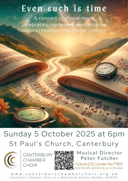 What a feast was had: A celebration of landmark composer anniversaries with an evening of glorious choral music spanning five centuries. The Canterbury Chamber Choir was delighted to present Even Such is Time, honouring: